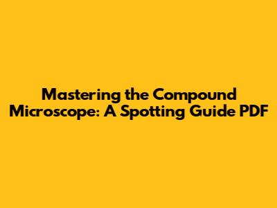 A PDF guide can be an invaluable resource for mastering compound microscope spotting techniques. These guides often include detailed diagrams, step-by-step instructions, and troubleshooting tips. They can help you to understand the principles of microscopy and to improve your spotting skills.