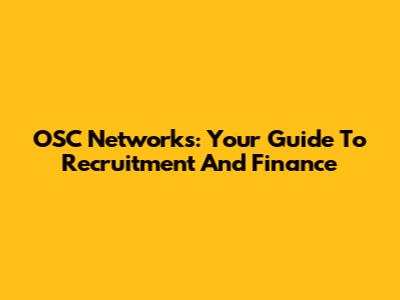 OSC Networks: Your Guide To Recruitment And Finance