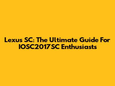 Lexus SC: The Ultimate Guide For IOSC2017SC Enthusiasts