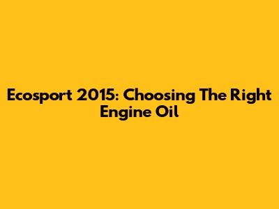 Ecosport 2015: Choosing The Right Engine Oil