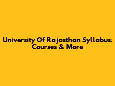 University Of Rajasthan Syllabus: Courses & More