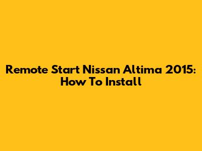 Remote Start Nissan Altima 2015: How To Install