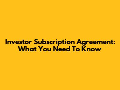 Investor Subscription Agreement: What You Need To Know