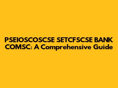 PSEIOSCOSCSE SETCFSCSE BANK COMSC: A Comprehensive Guide
