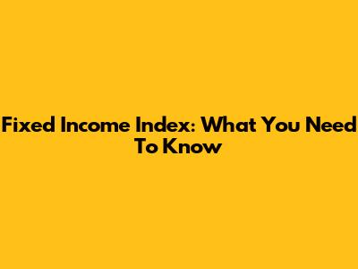 Fixed Income Index: What You Need To Know
