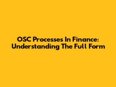 OSC Processes In Finance: Understanding The Full Form