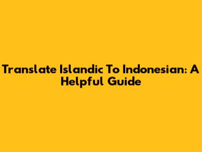 Translate Islandic To Indonesian: A Helpful Guide