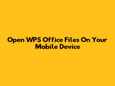 Open WPS Office Files On Your Mobile Device