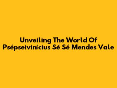 Unveiling The World Of Psépseivinícius Sé Sé Mendes Vale