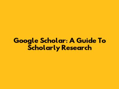 Google Scholar: A Guide To Scholarly Research