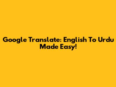 Google Translate: English To Urdu Made Easy!
