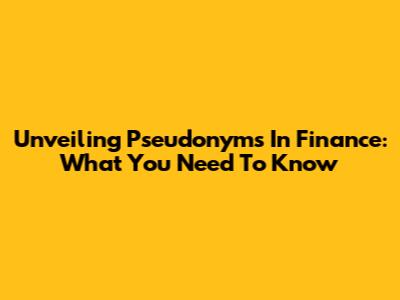 Unveiling Pseudonyms In Finance: What You Need To Know