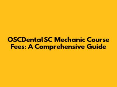 OSCDentalSC Mechanic Course Fees: A Comprehensive Guide