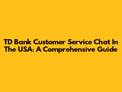 TD Bank Customer Service Chat In The USA: A Comprehensive Guide