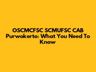 OSCMCFSC SCMUFSC CAB Purwokerto: What You Need To Know