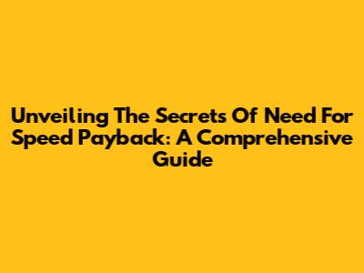 Unveiling The Secrets Of Need For Speed Payback: A Comprehensive Guide
