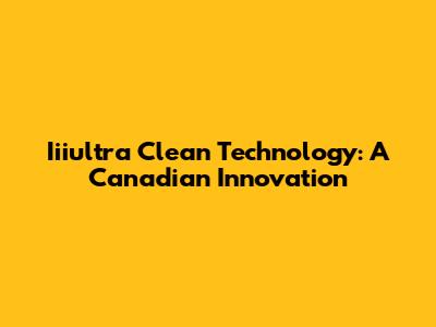 Iiiultra Clean Technology: A Canadian Innovation