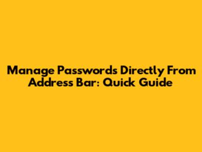 Manage Passwords Directly From Address Bar: Quick Guide