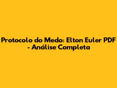 Hey guys! Já ouviram falar do Protocolo do Medo do Elton Euler? Se você está procurando entender tudo sobre esse livro e encontrar o PDF, chegou ao lugar certo. Vamos mergulhar fundo nessa análise completa para você não perder nada. Prepare-se, porque vamos explorar cada detalhe!
