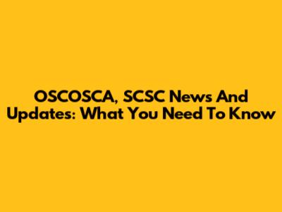 OSCOSCA, SCSC News And Updates: What You Need To Know