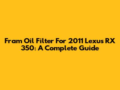 Fram Oil Filter For 2011 Lexus RX 350: A Complete Guide