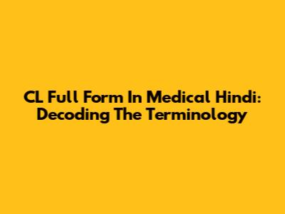 CL Full Form In Medical Hindi: Decoding The Terminology
