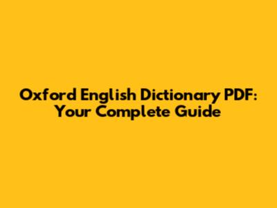 Oxford English Dictionary PDF: Your Complete Guide