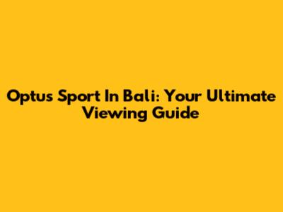 Optus Sport In Bali: Your Ultimate Viewing Guide