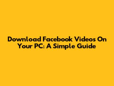 Download Facebook Videos On Your PC: A Simple Guide
