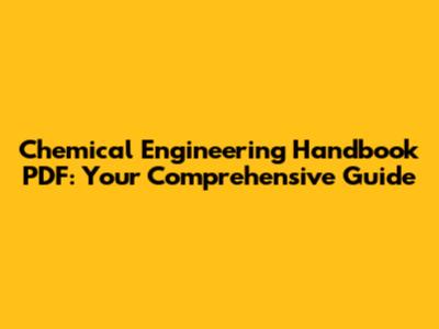 Chemical Engineering Handbook PDF: Your Comprehensive Guide