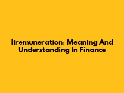 Iiremuneration: Meaning And Understanding In Finance