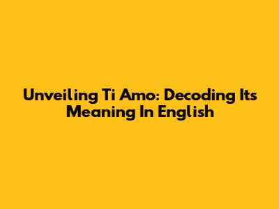 Unveiling 'Ti Amo': Decoding Its Meaning In English