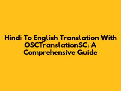Hindi To English Translation With OSCTranslationSC: A Comprehensive Guide