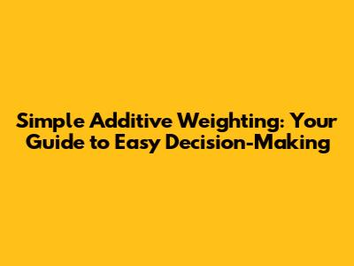 Hey everyone! Ever feel stuck trying to make a choice when there are so many things to consider? Maybe you're picking a new car, deciding where to go on vacation, or even just figuring out which coffee shop to hit up. That's where the Simple Additive Weighting (SAW) formula comes in handy. It's a super user-friendly method for making decisions when you have multiple factors to think about. Think of it as a way to weigh your options, comparing different criteria to find the best overall choice. Let's break it down, shall we?