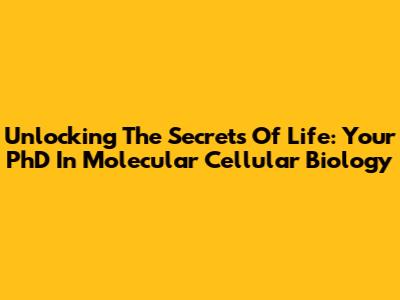 Unlocking The Secrets Of Life: Your PhD In Molecular Cellular Biology
