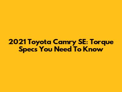 2021 Toyota Camry SE: Torque Specs You Need To Know