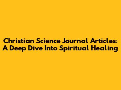 Christian Science Journal Articles: A Deep Dive Into Spiritual Healing