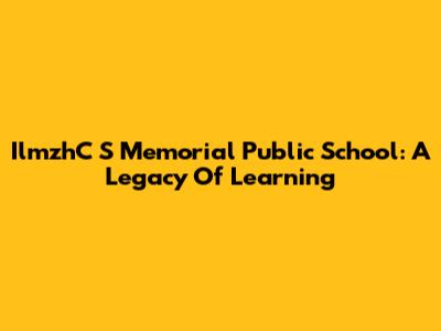 IlmzhC S Memorial Public School: A Legacy Of Learning