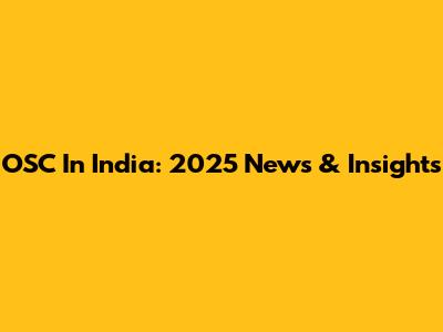 OSC In India: 2025 News & Insights