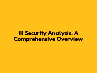 III Security Analysis: A Comprehensive Overview