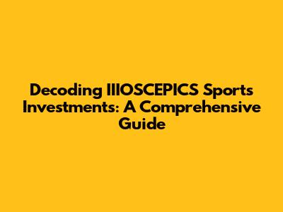 Decoding IIIOSCEPICS Sports Investments: A Comprehensive Guide