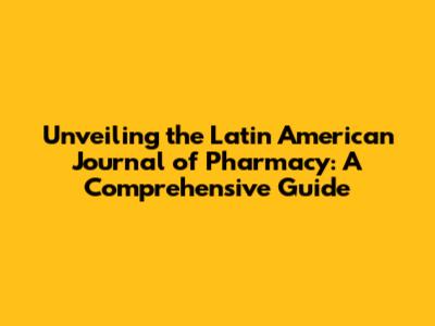 Hey everyone, let's dive into the fascinating world of the Latin American Journal of Pharmacy! If you're into pharmaceuticals, research, or just curious about what's happening in the field across Latin America, you're in the right place. This journal is a real gem, and we're going to explore what makes it tick, why it matters, and how you can get involved. Think of it as your go-to guide for everything related to this awesome publication. So, grab your lab coats (just kidding... unless?) and let's get started!