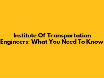 Institute Of Transportation Engineers: What You Need To Know