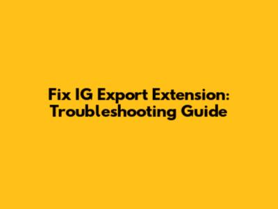 Fix IG Export Extension: Troubleshooting Guide