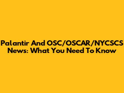 Palantir And OSC/OSCAR/NYCSCS News: What You Need To Know