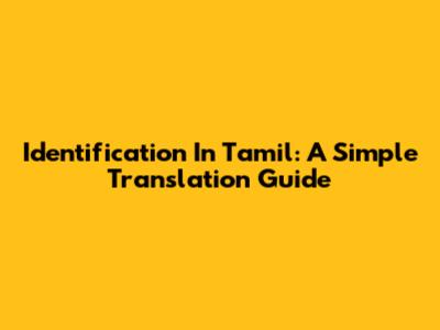 Identification In Tamil: A Simple Translation Guide