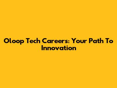 Oloop Tech Careers: Your Path To Innovation